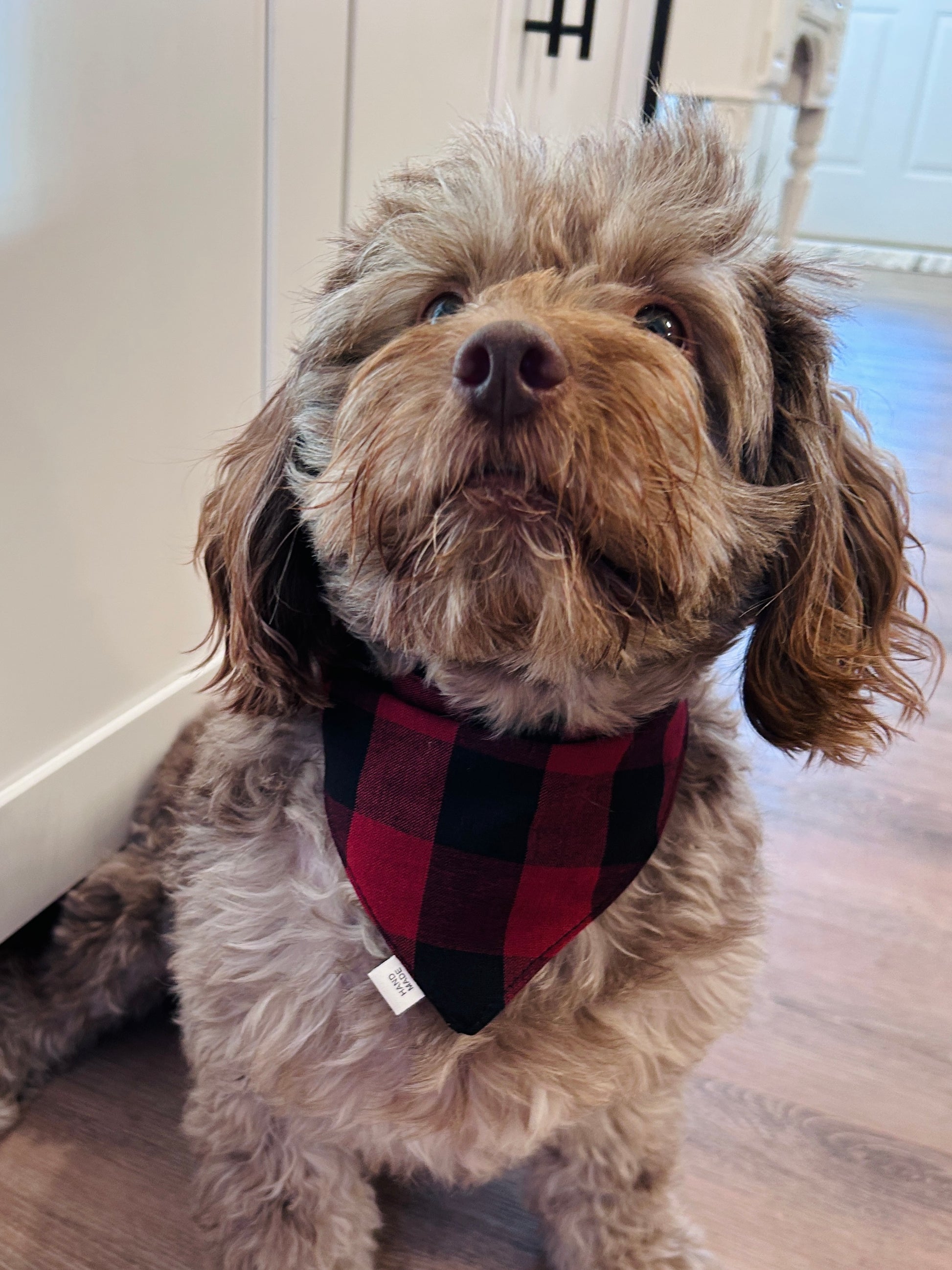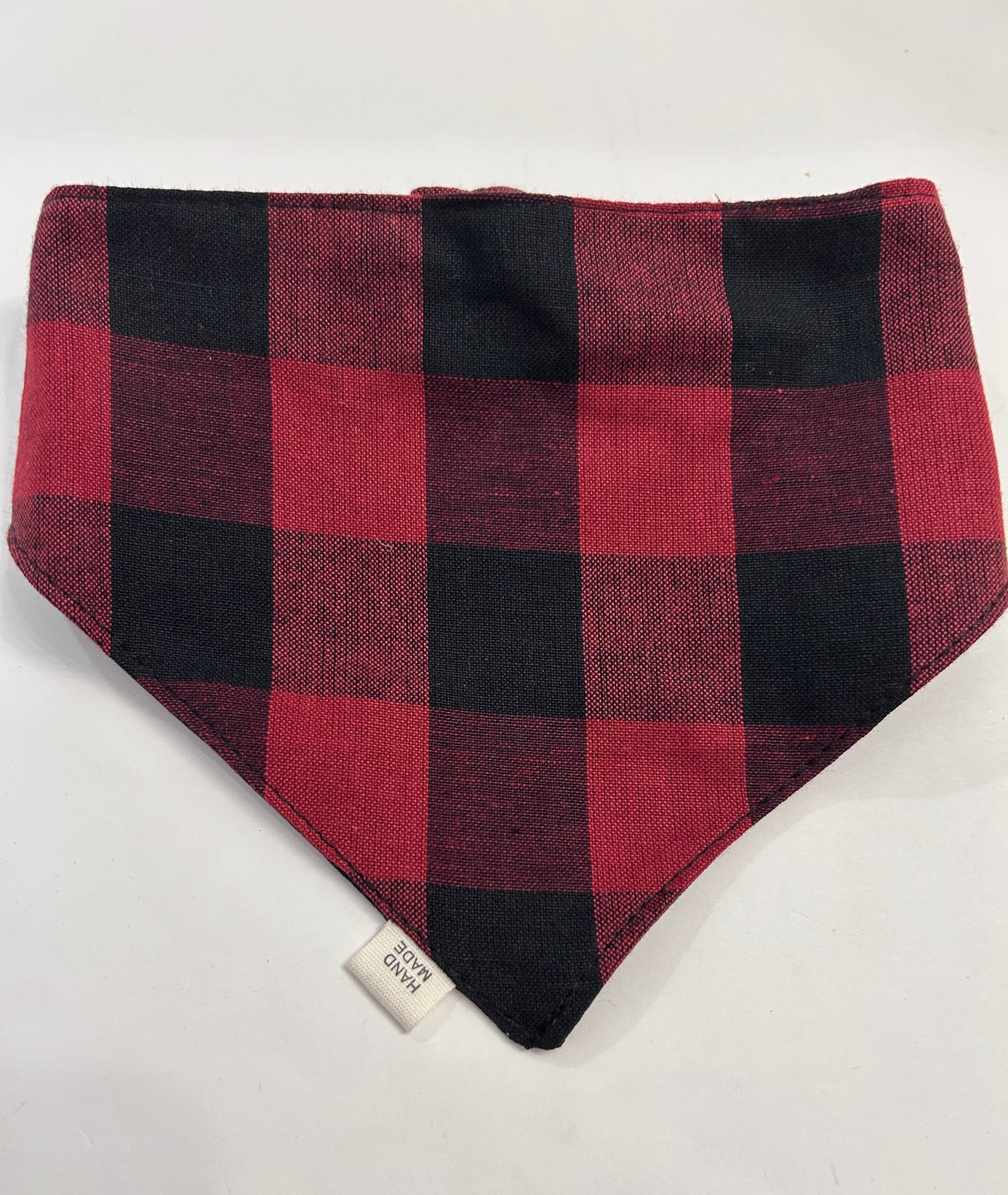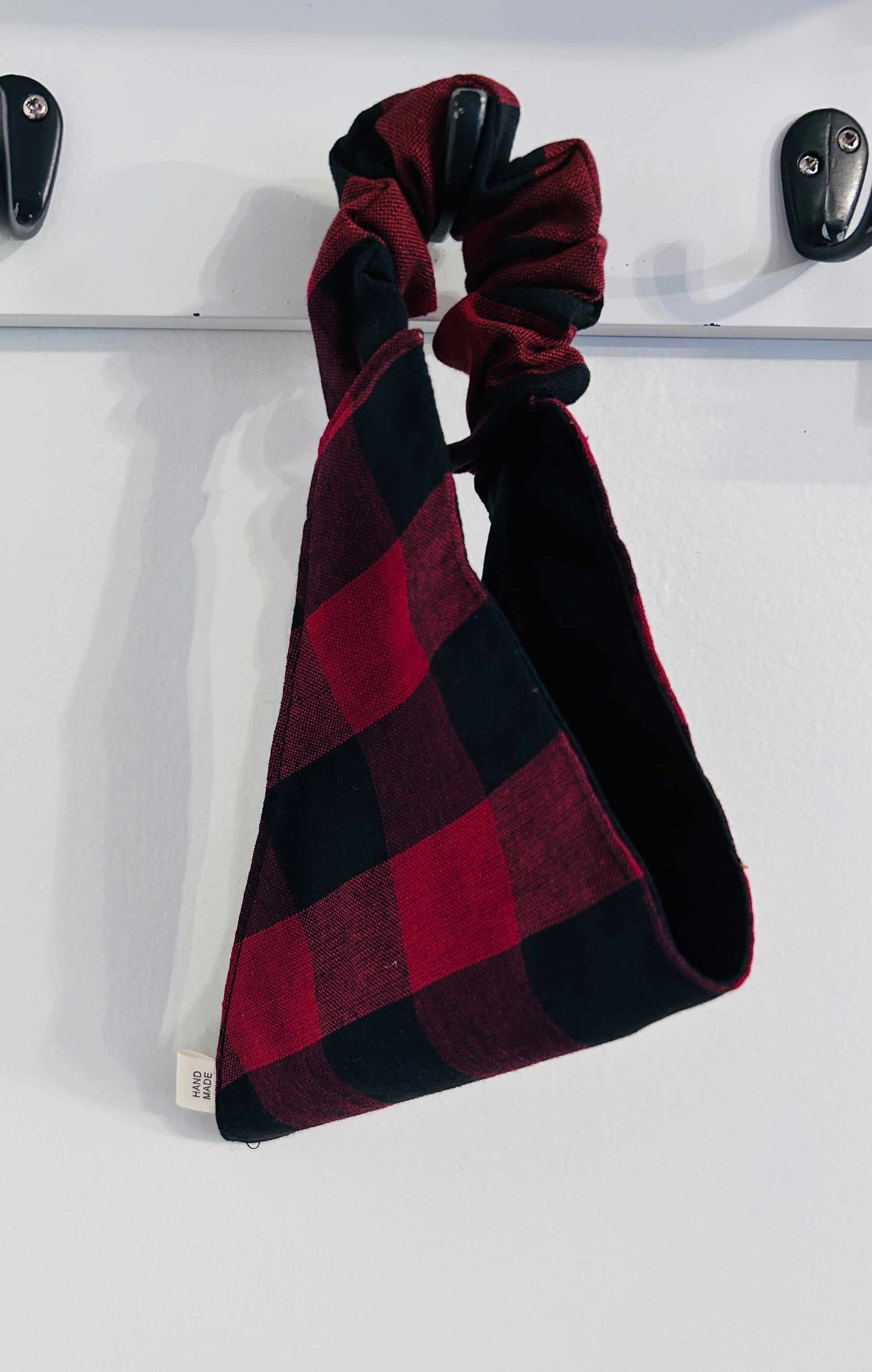 ❤️ Reversible Scrunchie Dog Bandana - Classic Dark Red & Black Buffalo Plaid