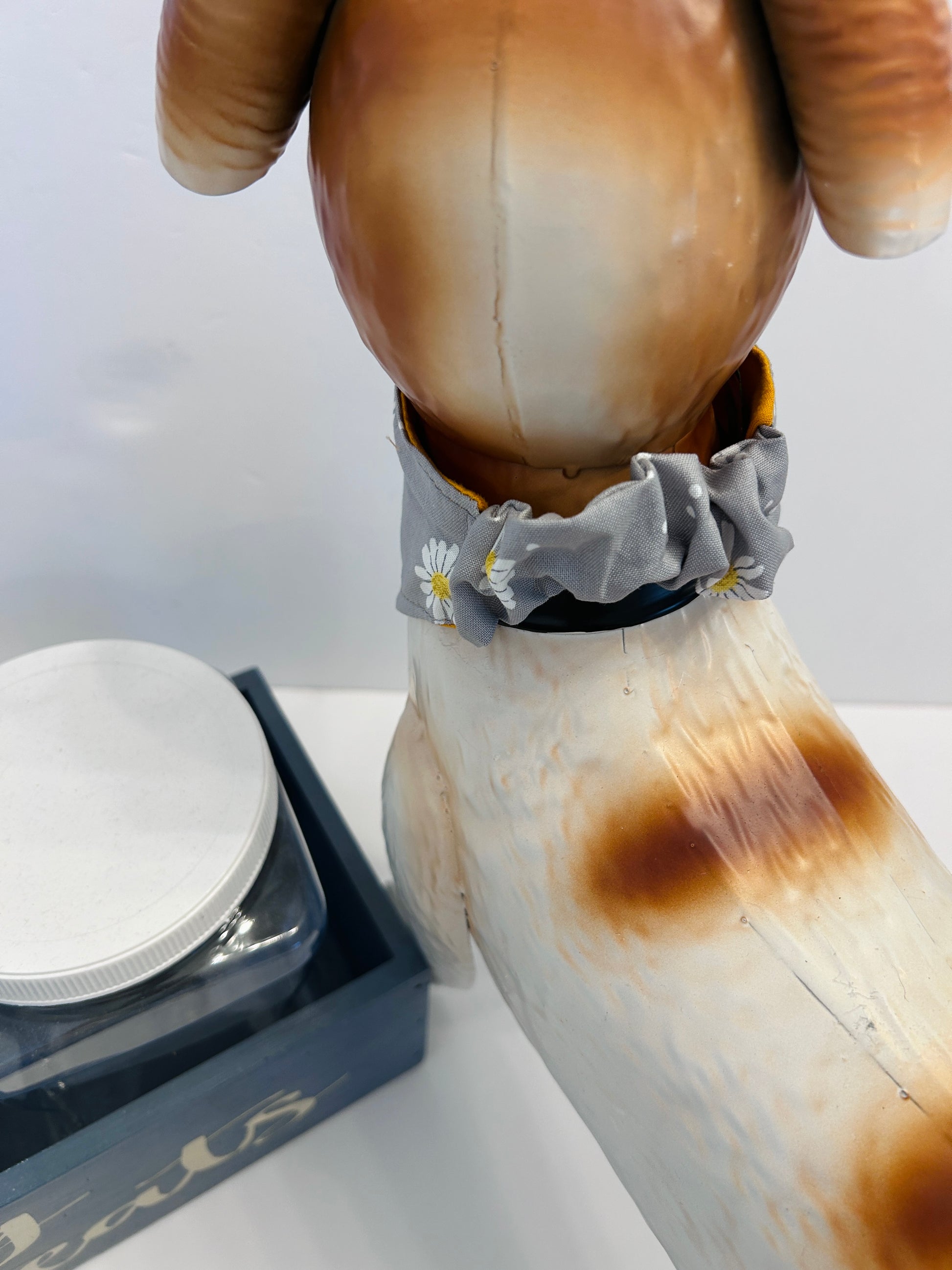 Whether your furry friend is exploring the neighborhood or relaxing at home, this daisy-adorned scrunchie adds a delightful pop of personality. It's the perfect accessory for pets who love to look their best!