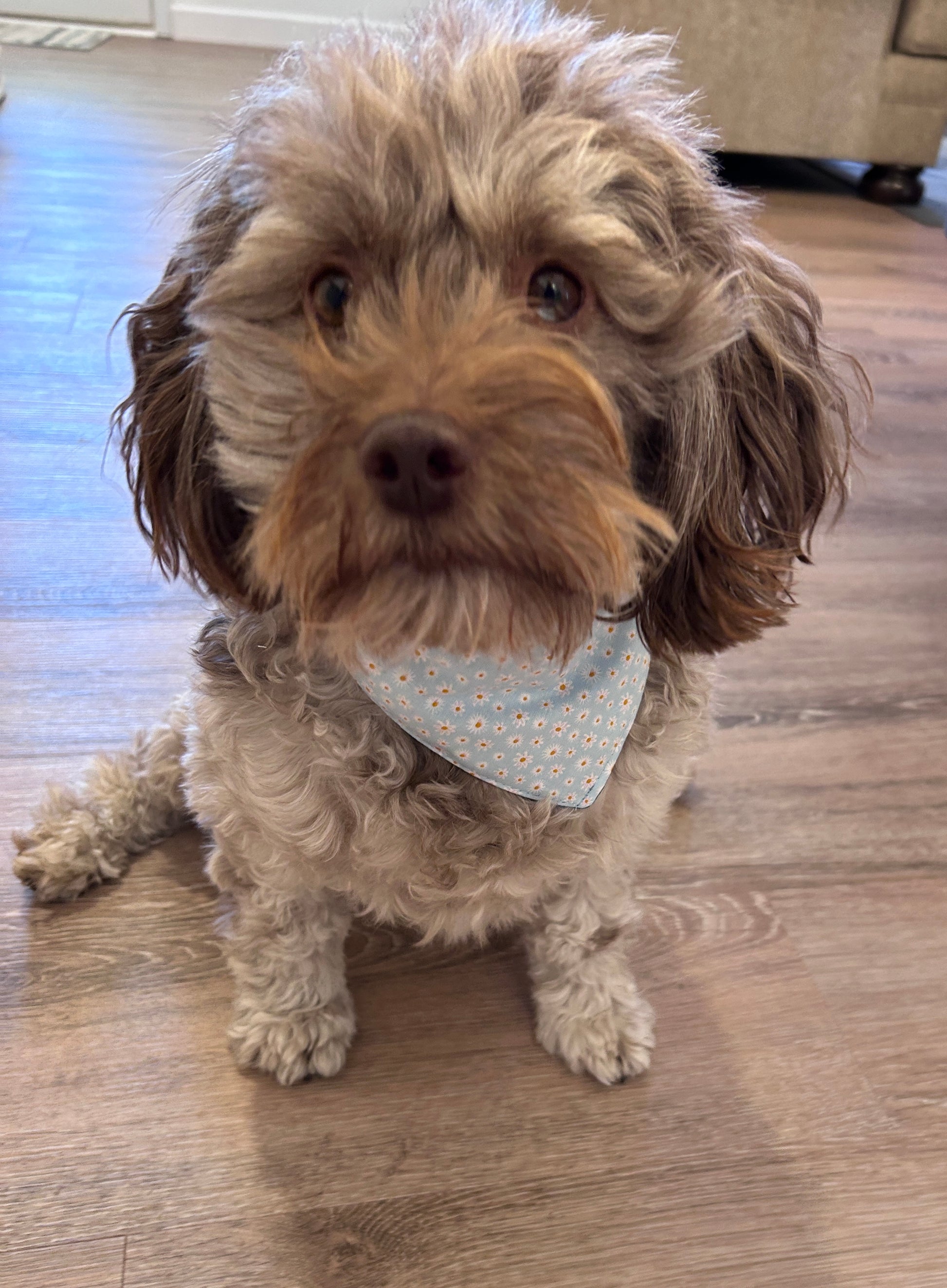 Whether your furry friend is strutting down the sidewalk or posing for photos, this light blue scrunchie adds just the right touch of style. It's the perfect blend of fashion and function!